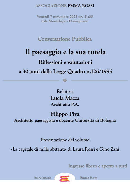 Comunicato Stampa – Conversazione pubblica “Il paesaggio e la sua tutela. Riflessioni e valutazioni a 30 anni dalla Legge Quadro n. 126/1995.”